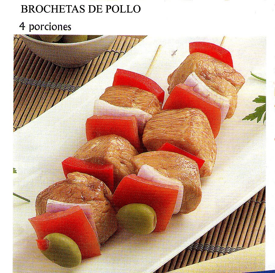 * Armar las brochetas insertando los ingredientes en forma alternada.
