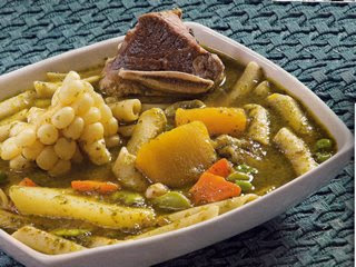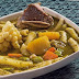 * Poner las verduras y papas precocidas en la olla de las carnes con las 4 tazas de agua hirviendo, agregar