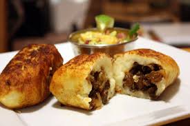 Ingredientes y preparación de la Papa rellena con mariscos.